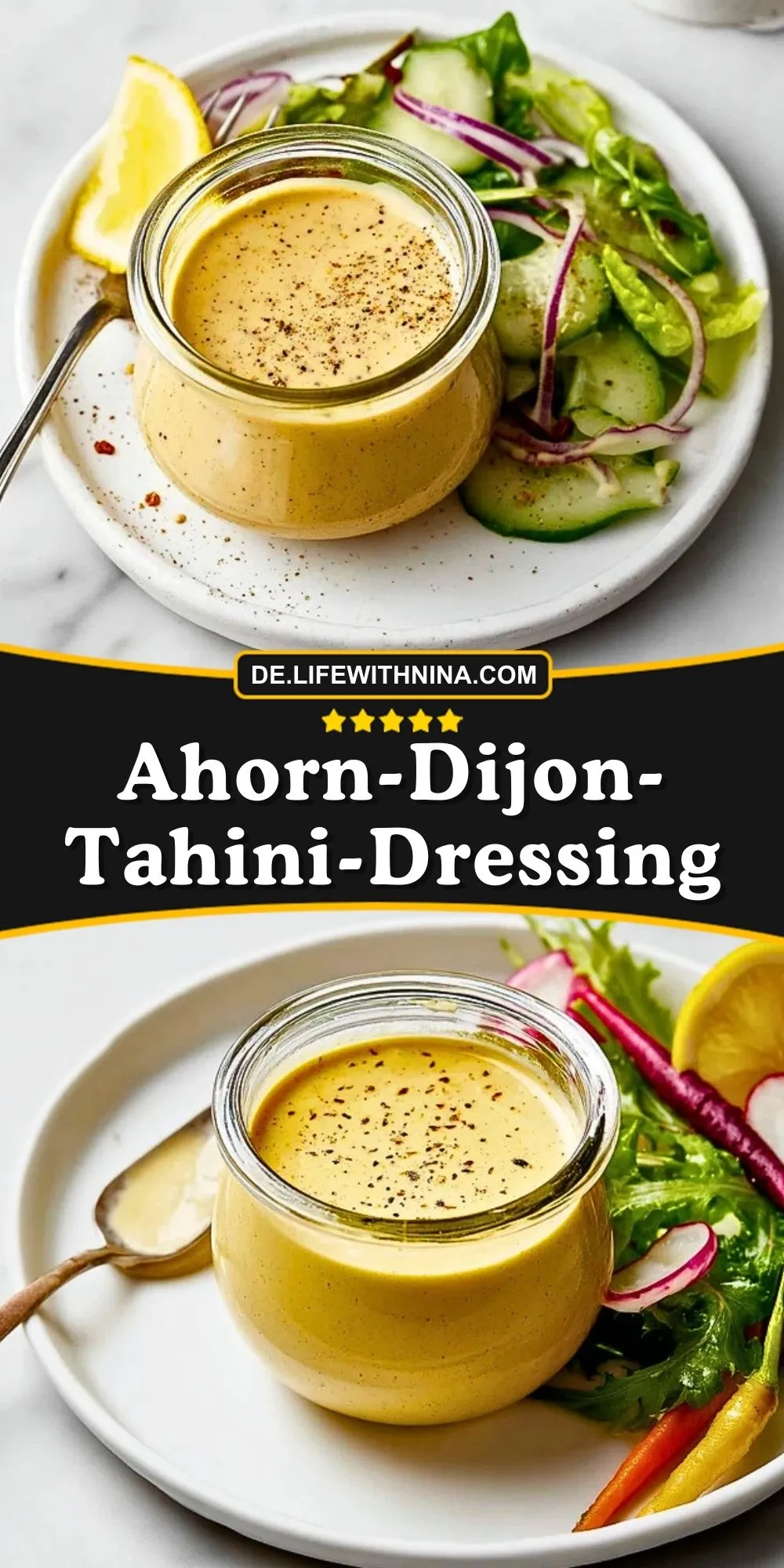 Dieses cremige Ahorn-Dijon-Tahini-Dressing vereint die herzhafte Note von Tahin mit der Süße von Ahornsirup und der angenehmen Schärfe von Dijon-Senf. Perfekt zu Salaten, Bowls, als Dip zu Gemüse oder als Topping zu Ofengerichten. Es ist schnell zubereitet, vegan, glutenfrei und hält sich mehrere Tage im Kühlschrank.