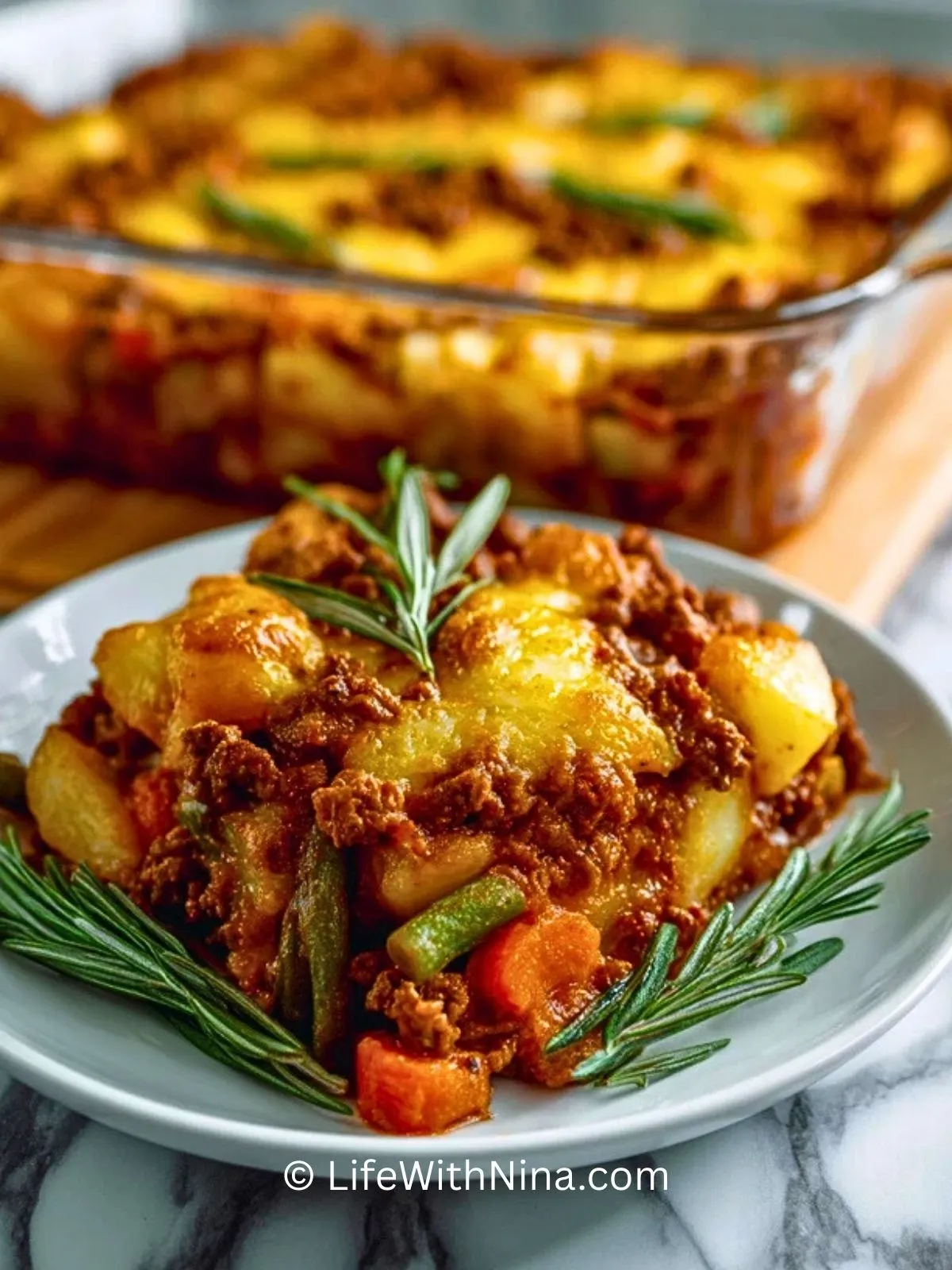 Besonders an frostigen Tagen ist dieser Auflauf ein beliebter Klassiker. Die Kombination aus saftigem Fleisch, kräftiger Sauce und fluffigem Kartoffelstampf sorgt für ein zufriedenstellendes und nahrhaftes Essen, das lange satt macht und jedem schmeckt – von Groß bis Klein.