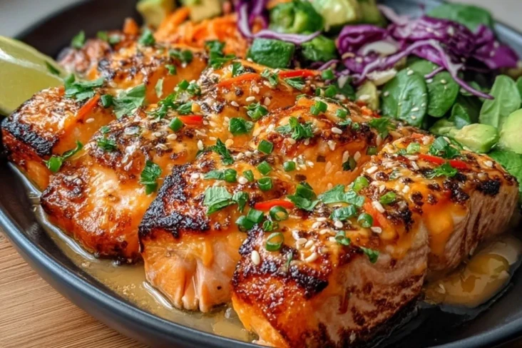 11. Bang Bang Lachs mit der restlichen Sauce servieren.