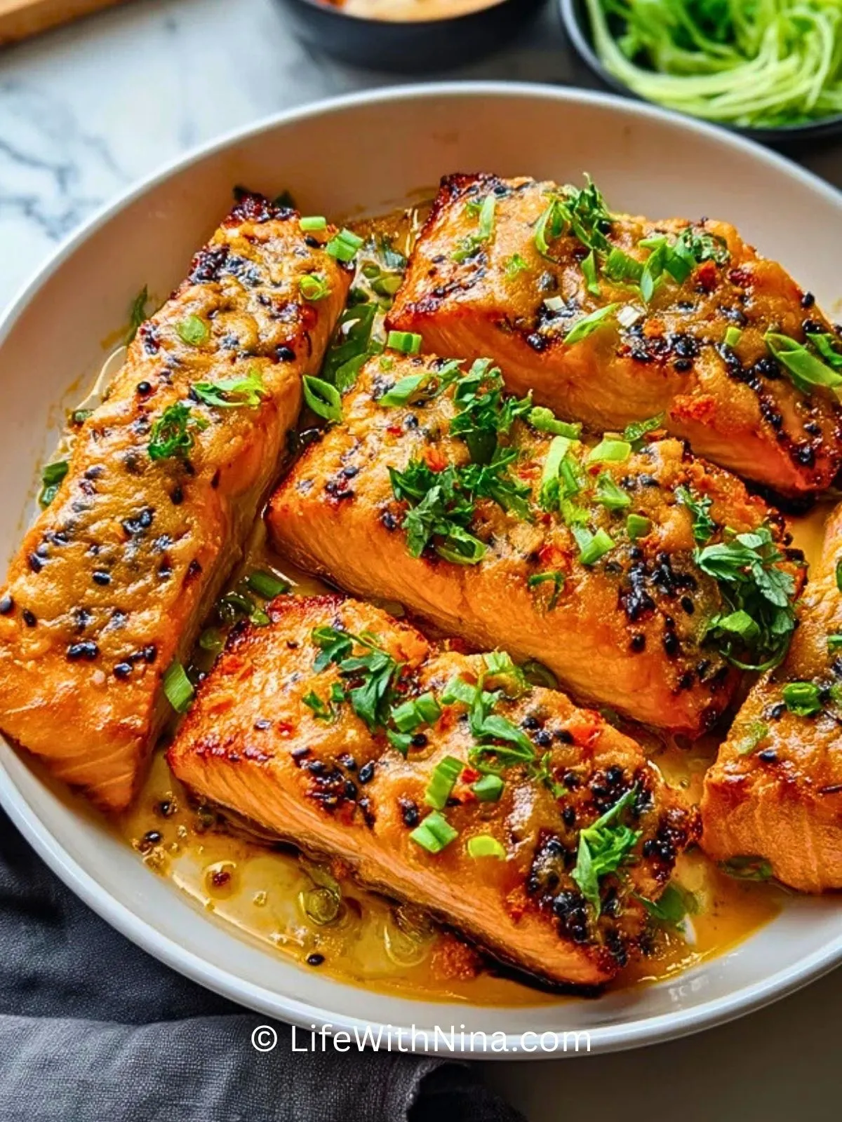 Keywords: Bang Bang Lachs, Ofenlachs, Lachs mit Chilisauce, schnelles Abendessen, asiatisch