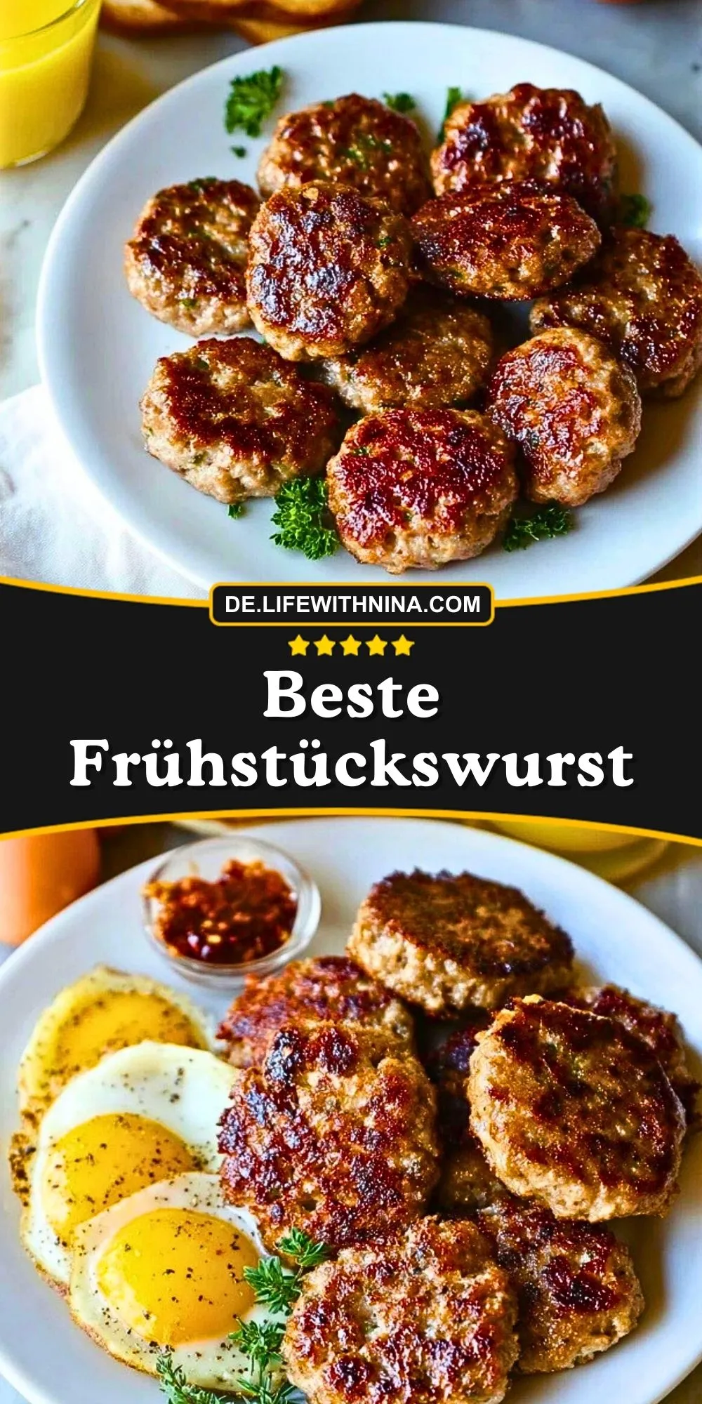 Diese beste Frühstückswurst überzeugt durch ihre einfache Zubereitung, ihre saftige Konsistenz und ihre ausgewogene Würze. Sie ist kräftig genug, um nach klassischem Frühstück zu schmecken, aber nicht so dominant, dass sie andere Beilagen überdeckt. Außerdem kannst du die Masse leicht an deinen Geschmack anpassen, zum Beispiel mit etwas mehr Kräutern, Pfeffer oder einer milden Schärfe.