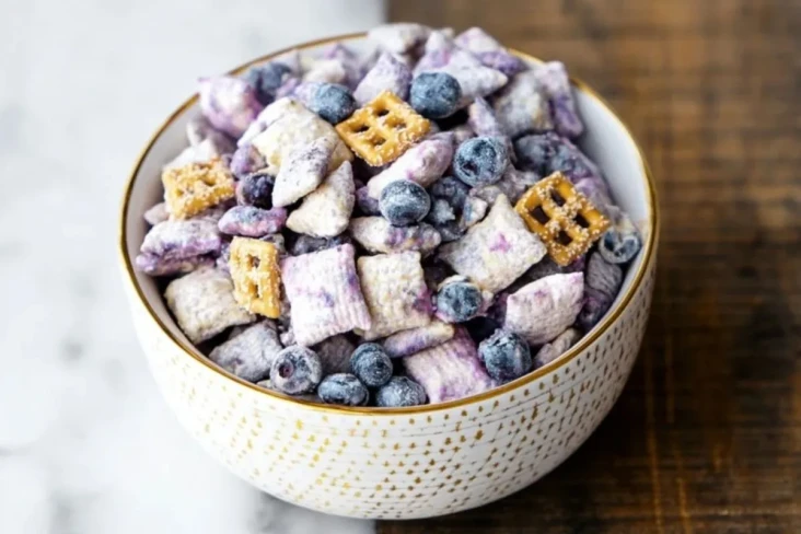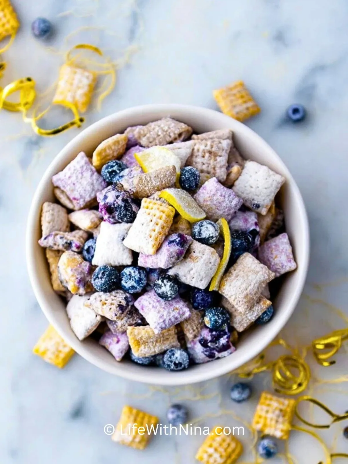 Der Blaubeer-Zitronen-Cheesecake Snackmix ist ein unwiderstehlicher, sommerlicher Snack, der fruchtige Blaubeeren, knusprige Cerealien, salzige Brezeln und cremige Zitronen-Cheesecake-Aromen kombiniert. Perfekt für Partys, Picknicks oder als süßer Snack für zwischendurch!
