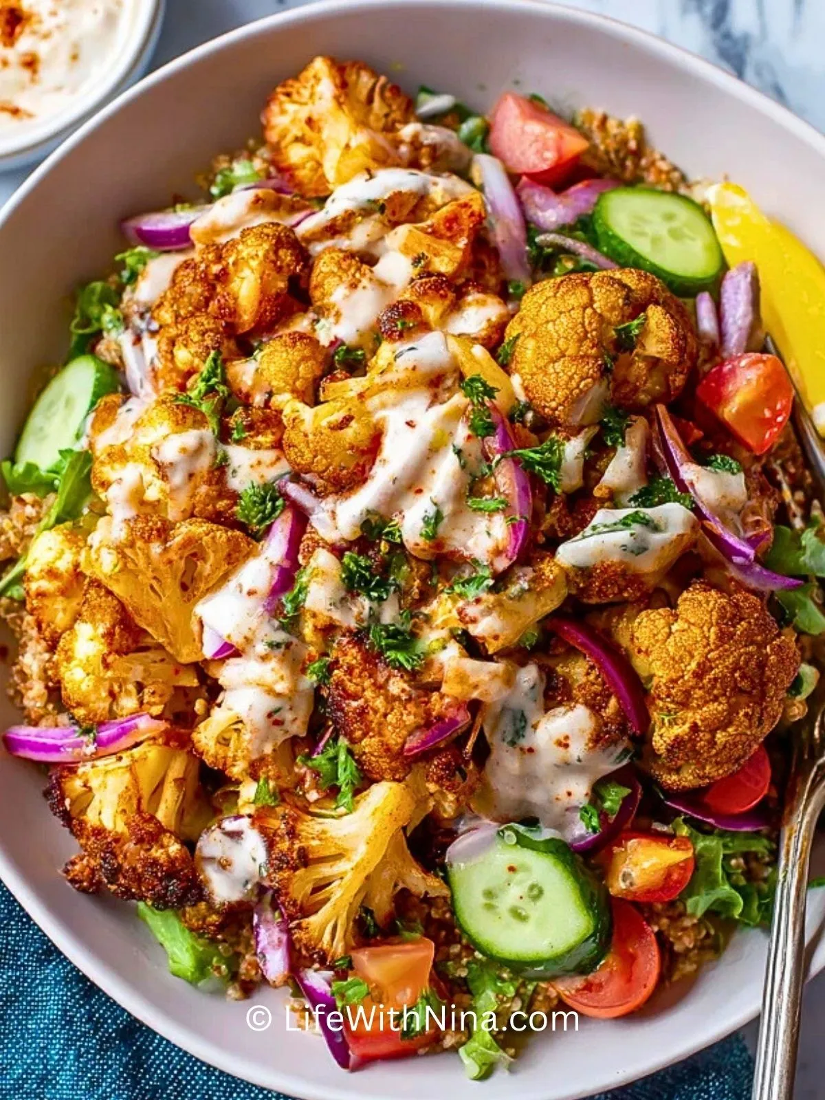 Blumenkohl ist unglaublich vielseitig und nimmt beim Rösten die Aromen von Gewürzen besonders gut auf. Im Gegensatz zu traditionellem Fleisch-Shawarma ist Blumenkohl leichter, ballaststoffreich und liefert wertvolle Vitamine sowie Mineralstoffe. Gerade in Bowls sorgt er für eine herzhafte, sättigende Basis, ohne schwer zu wirken.