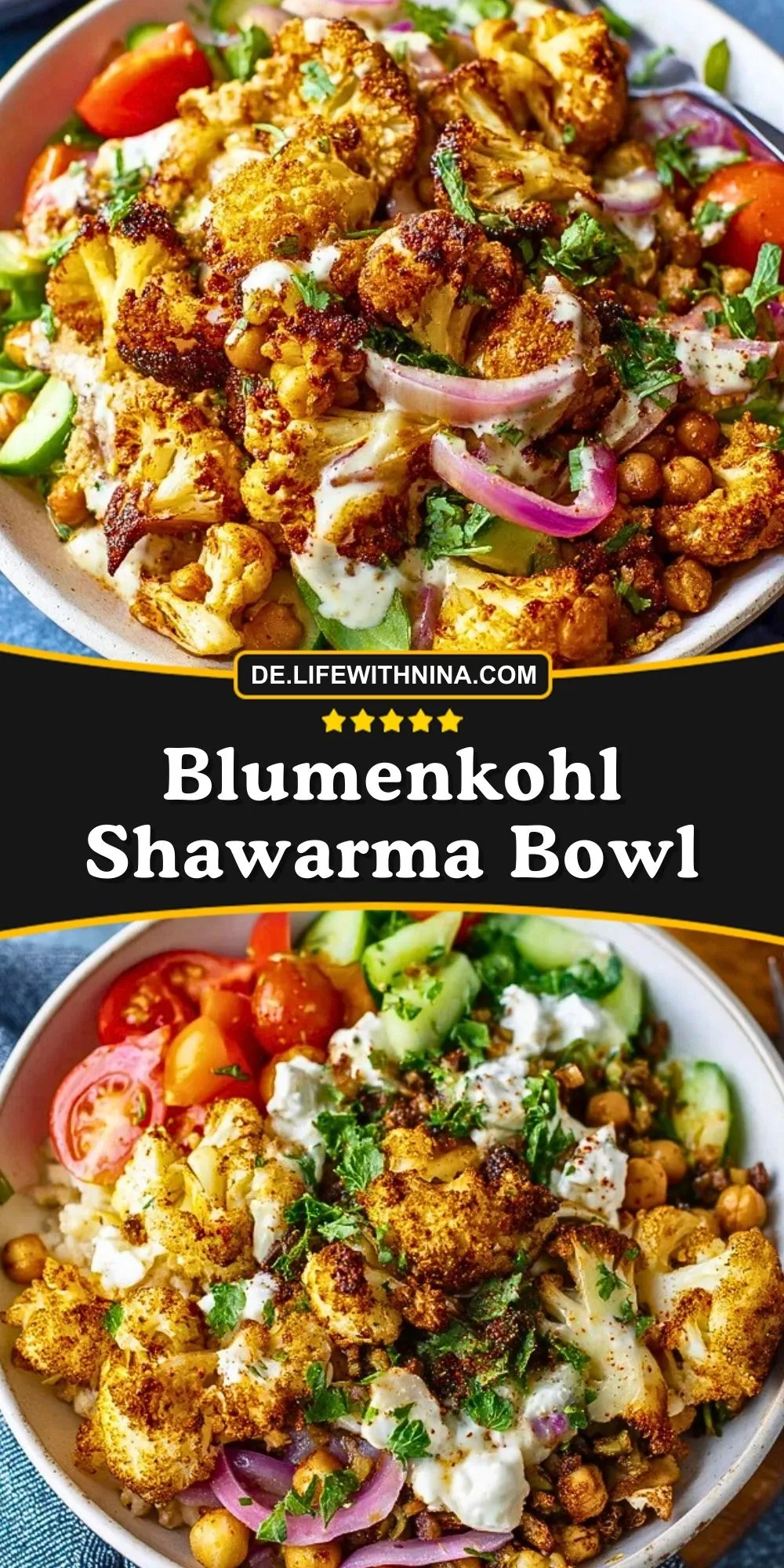 Eine Blumenkohl Shawarma Bowl bringt die Aromen des Orients direkt zu dir nach Hause – ganz ohne Fleisch, dafür mit viel Gemüse und fantastischen Gewürzen. Gerösteter Blumenkohl trifft auf würzige Kichererbsen, knackige Gurken, eingelegte rote Zwiebeln und cremiges Tahini-Dressing. Diese Bowl ist nicht nur farbenfroh, sondern auch voller Geschmack und macht satt, ohne zu beschweren.