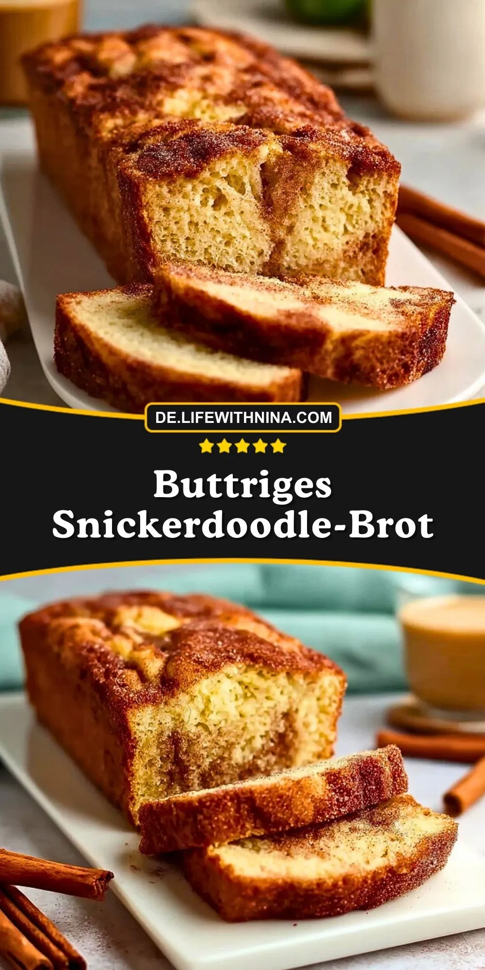 Buttriges Snickerdoodle-Brot verbindet das Beste aus Zimtkeks und saftigem Kuchen. Der zarte Rührteig wird von einer knusprigen Zimt-Zucker-Kruste umhüllt und ist herrlich aromatisch. Perfekt für den Nachmittagskaffee oder als süßes Frühstück.