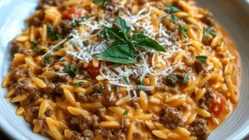 Rinderhackfleisch-Orzo mit Tomatenrahmsauce