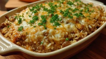 Französische Zwiebelsuppe Auflauf mit Hackfleisch und Reis
