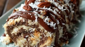 Schokoladen-Kokos-Pekannuss-Rolle
