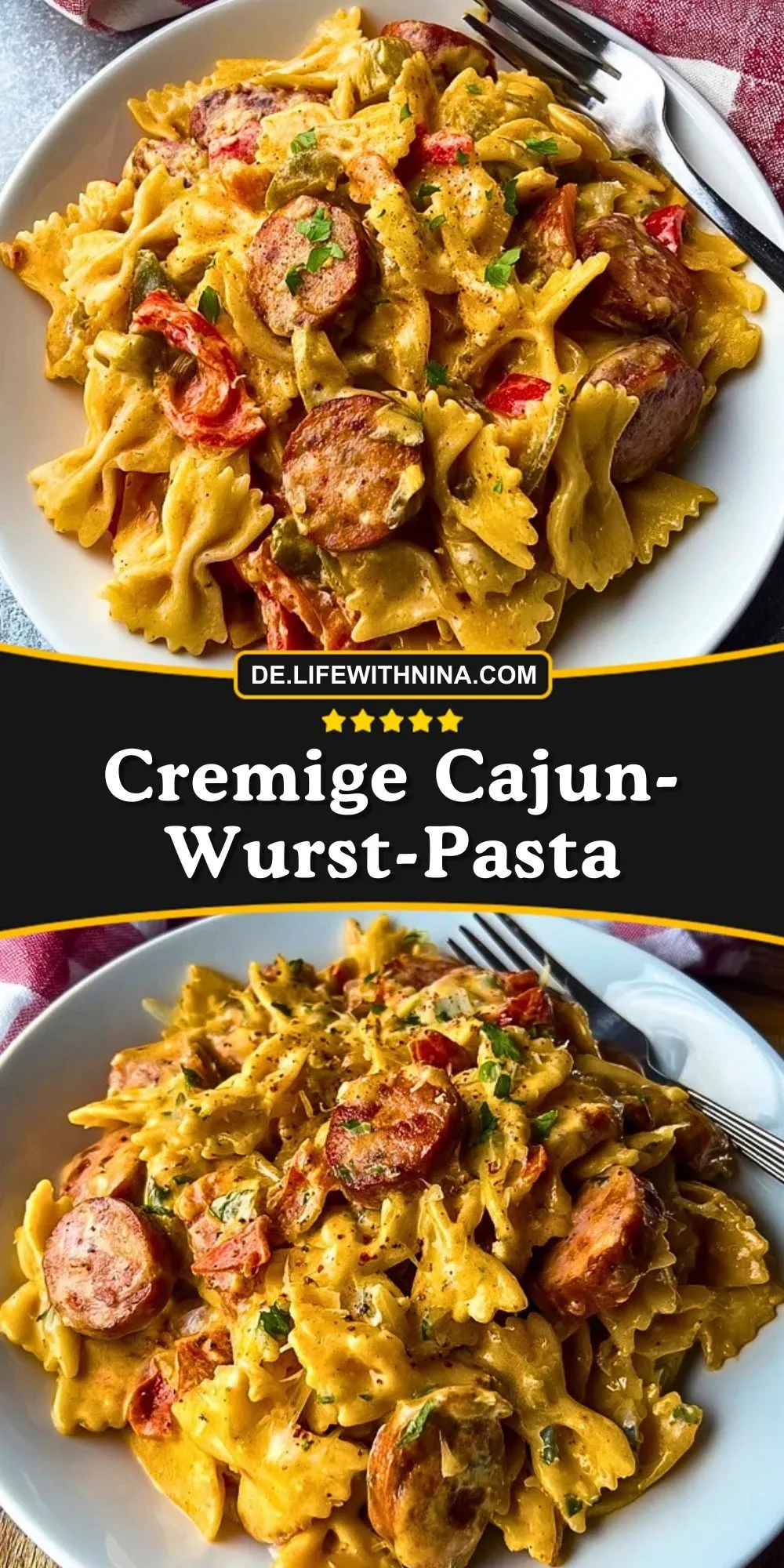 Diese cremige Cajun-Wurst-Pasta ist das perfekte Wohlfühlgericht! Saftige Farfalle, würzige geräucherte Wurst und eine samtige, pikante Sauce – alles in einer Pfanne, schnell gemacht und voller Geschmack. Perfekt für ein entspanntes Abendessen mit Familie oder Freunden.