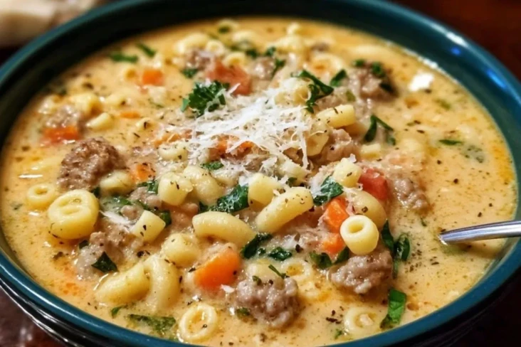 Eine dampfende Schale Cremige Parmesan-Italienische Wurst-Ditalini-Suppe bringt nicht nur italienisches Flair auf den Tisch, sondern ist auch ein echtes Wohlfühlessen für kalte Tage. Die Kombination aus würziger italienischer Bratwurst, kleinen Ditalini-Nudeln, frischem Gemüse und einer cremigen Parmesan-Brühe sorgt für einen reichhaltigen, herzhaften Genuss – perfekt für ein entspanntes Familienessen oder einen besonderen Abend mit Freunden.