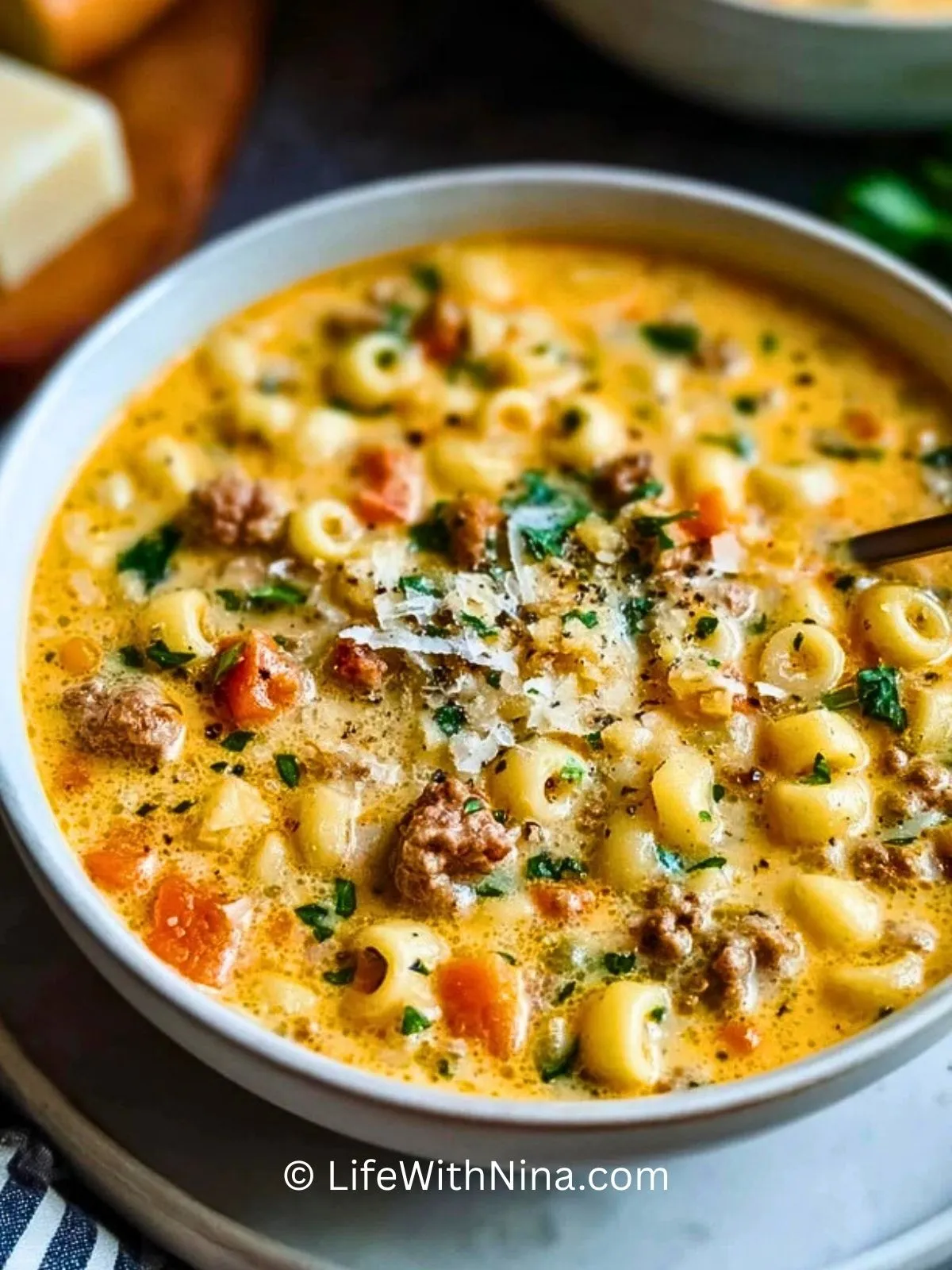 Was diese Suppe so besonders macht, ist das Zusammenspiel der feinen Zutaten. Die cremige Textur, der würzige Käse und das Aroma der italienischen Wurst harmonieren großartig und machen jede Portion zu einem kleinen Highlight.