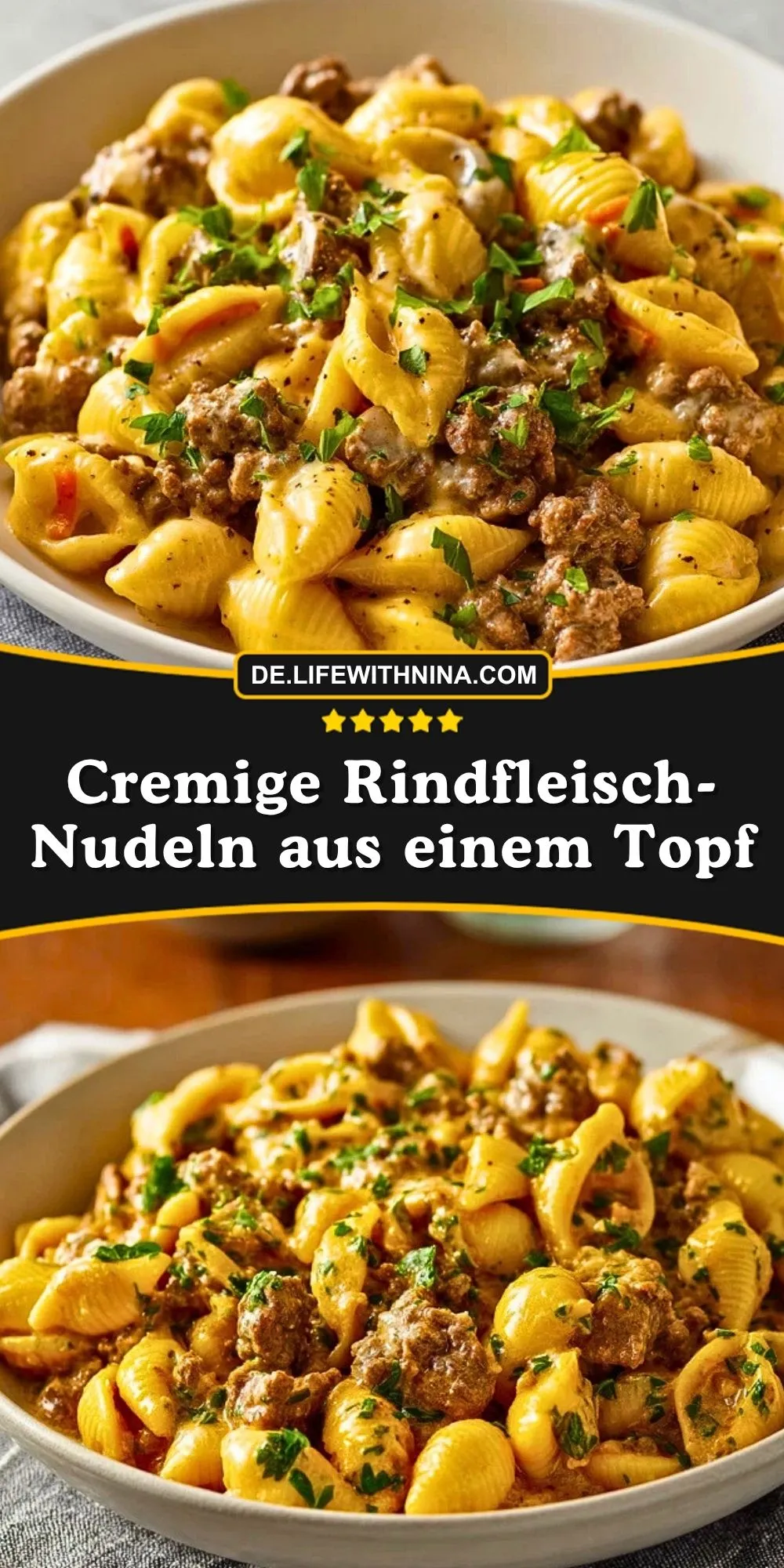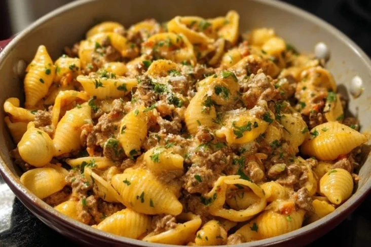 Ein schnelles, herzhaftes Wohlfühlgericht mit zartem Rinderhack, Muschelnudeln und einer cremigen, würzigen Sauce. Dieses einfache One-Pot-Rezept ist perfekt für den Feierabend, macht angenehm satt und bringt mit wenig Aufwand viel Geschmack auf den Tisch.