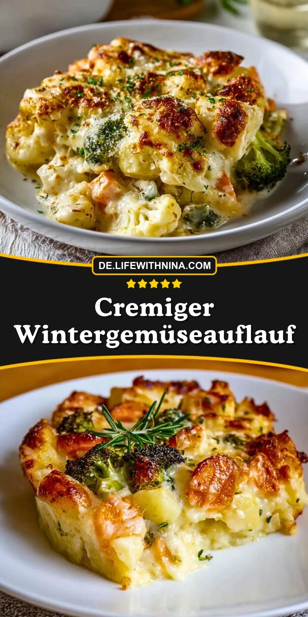 Ein wunderbar cremiger Auflauf mit buntem Wintergemüse, feiner Béchamelsauce und würziger Käsekruste. Perfekt als vegetarisches Hauptgericht oder Beilage an kalten Tagen. Lässt sich auch gut vorbereiten und ist ein echter Wohlfühlklassiker!