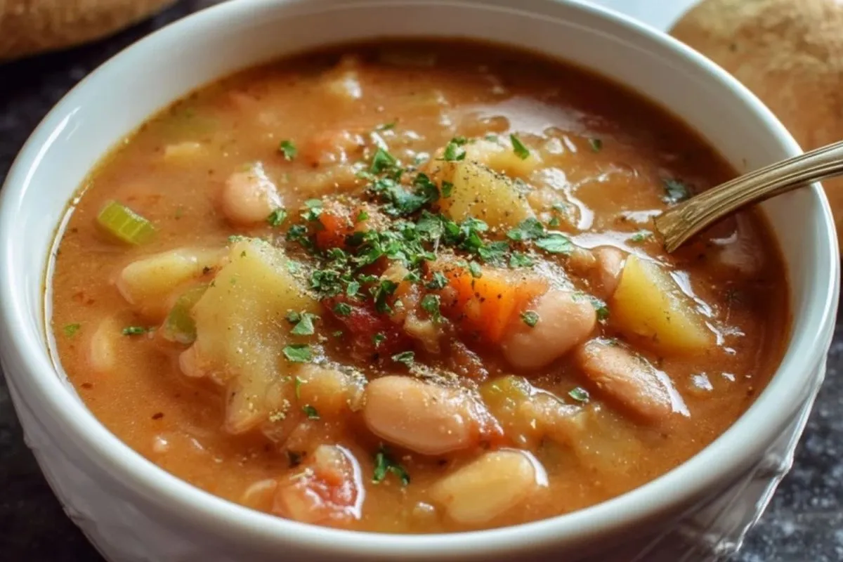- Cremige Kartoffelsuppe mit Lauch und Speck.