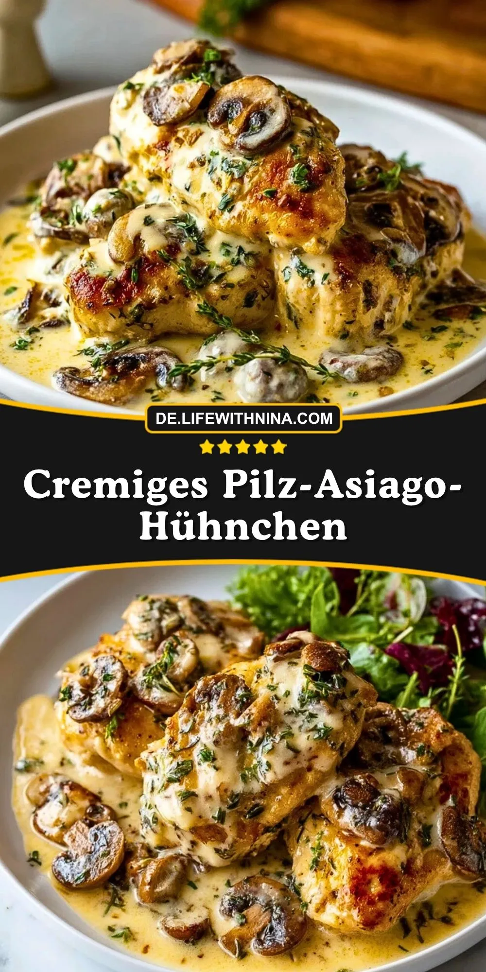 Keywords: Cremiges Pilz-Asiago-Hühnchen, Hähnchen mit Pilzsauce, Asiago Hähnchen, cremiges Pfannengericht