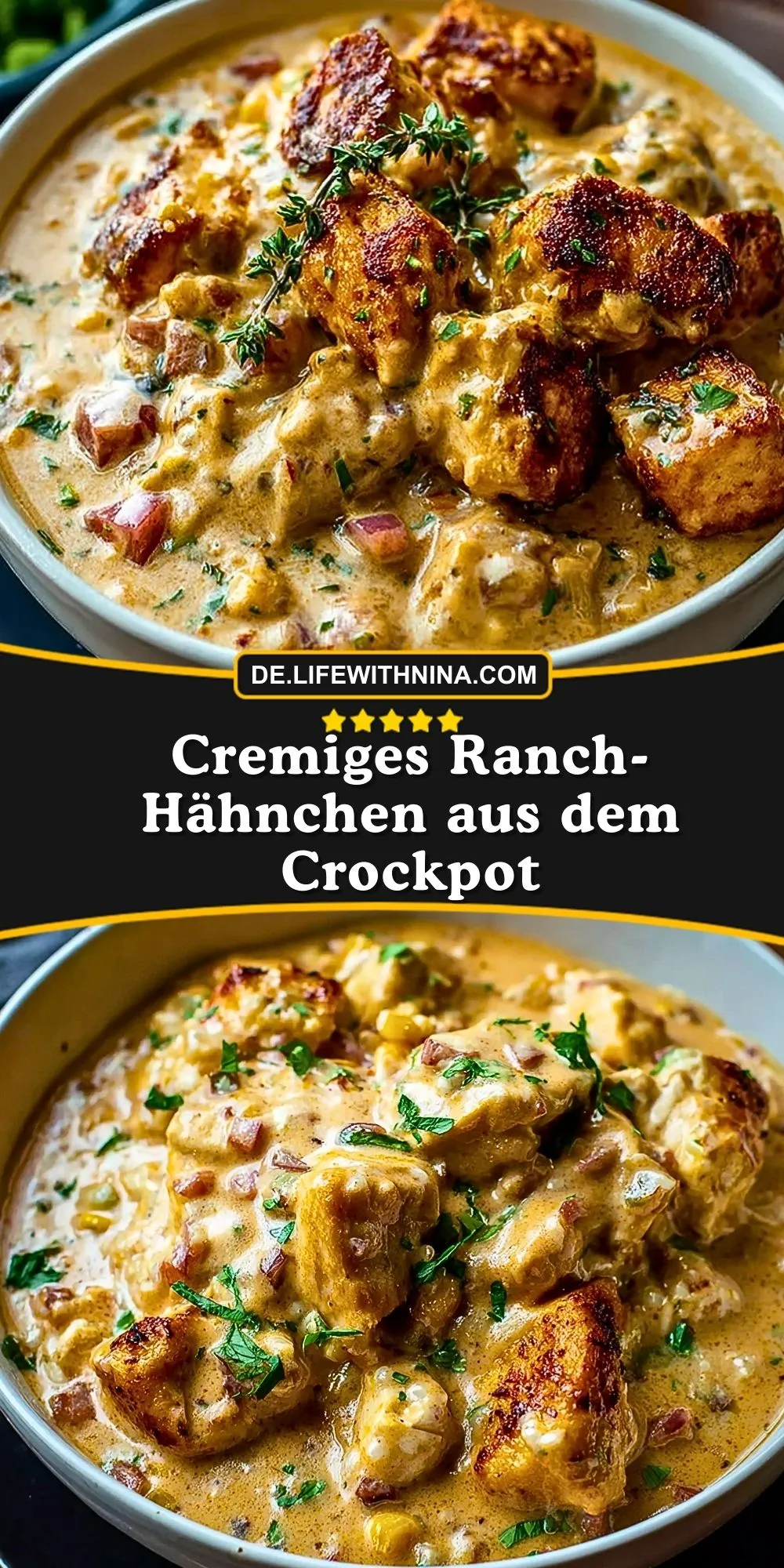 Cremiges Ranch-Hähnchen aus dem Crockpot ist ein echtes Wohlfühlgericht – mit zarten Hähnchenbrustfilets, einer würzigen Ranch-Frischkäse-Soße und herzhaften Speckwürfeln. Perfekt für stressfreie Tage und ideal, um Familie und Gäste zu verwöhnen.