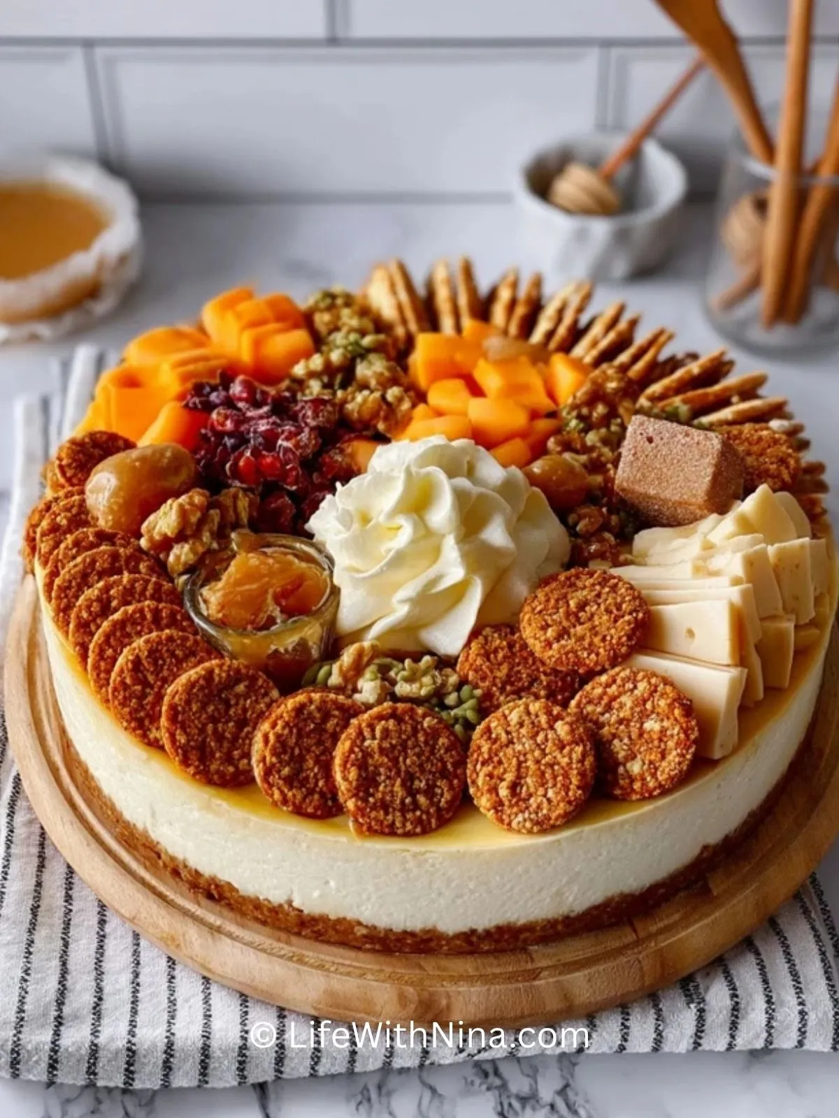 Lege eine große Holzplatte oder ein schönes Serviertablett bereit. Wenn du magst, lege Backpapier aus oder verwende ein dekoratives Tuch als Unterlage.