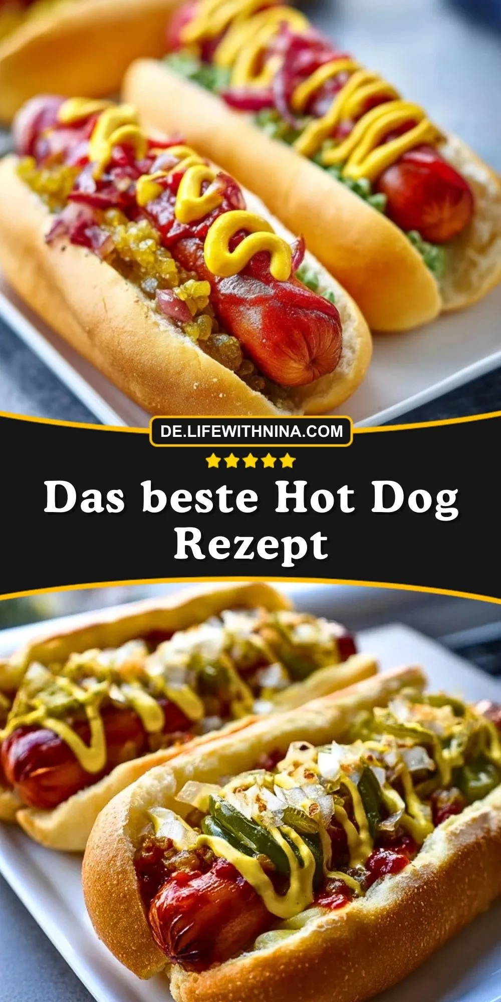 Diese Hot Dogs sind die perfekte Mischung aus würzigen Würstchen, fluffigen Brötchen und klassischen Toppings wie Röstzwiebeln, sauren Gurken, Senf und Ketchup. Schnell gemacht, individuell belegbar und ein absoluter Hit bei Groß und Klein. Perfekt für jede Party oder ein entspanntes Abendessen zu Hause!