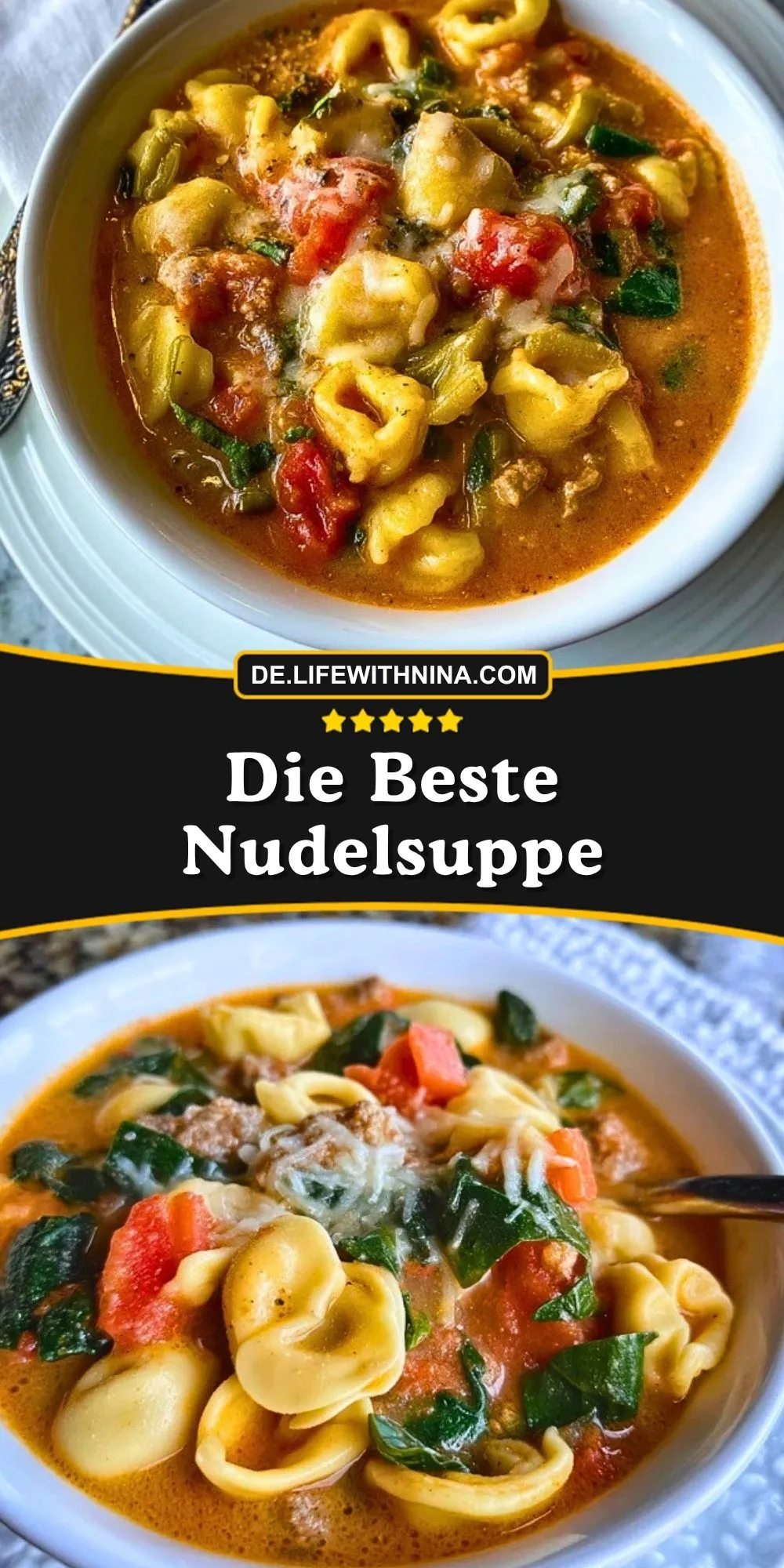Eine wirklich gute Nudelsuppe ist genau das Richtige, wenn du etwas Wärmendes, Herzhaftes und trotzdem unkompliziertes auf den Tisch bringen möchtest. Diese Version verbindet zarte Nudeln mit einer aromatischen Tomaten-Sahne-Brühe, frischem Spinat und würzigem Parmesan zu einer Suppe, die sättigt, ohne schwer zu wirken.
