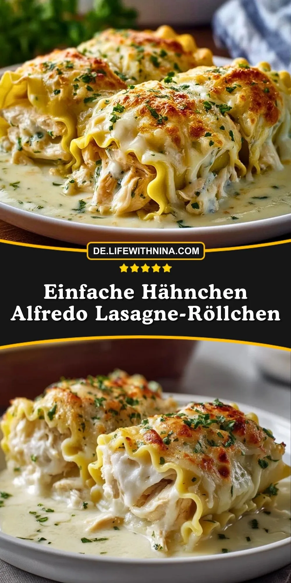 Zarte Lasagne-Röllchen gefüllt mit saftigem Hähnchen, cremigem Ricotta und viel Käse, übergossen mit einer hausgemachten Alfredo-Sauce. Ein einfaches, herzhaftes Ofengericht für jede Gelegenheit!