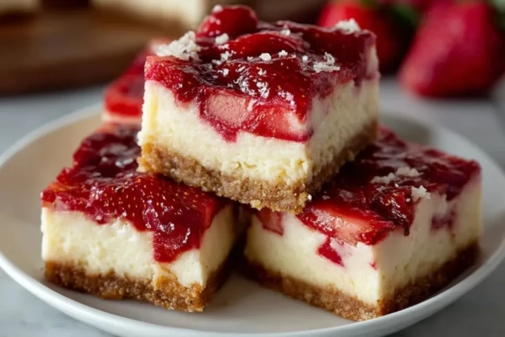 Cremige Einfache Keto Erdbeer Käsekuchen Riegel mit nussigem Mandelboden, zarter Frischkäsefüllung und fruchtiger Erdbeerschicht sind ein unkompliziertes Low-Carb-Dessert für jede Gelegenheit. Sie lassen sich gut vorbereiten, sauber in Stücke schneiden und schmecken direkt aus dem Kühlschrank besonders frisch und samtig.