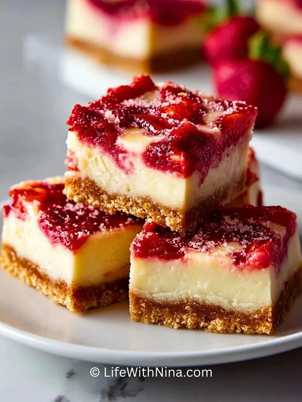 Und lass mich in den Kommentaren wissen, wie deine Version geworden ist. Hast du die Erdbeerschicht extra stückig gelassen oder lieber fein püriert? Hast du noch etwas Zitronenabrieb in die Füllung gegeben?