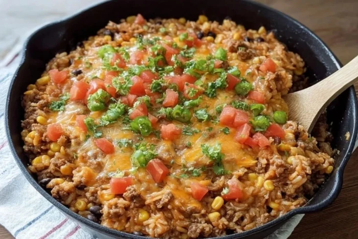 Dieser mexikanische Reisauflauf aus nur einem Topf kombiniert herzhaftes Hackfleisch, würzigen Reis, Mais, Bohnen und Käse zu einem unkomplizierten, aromatischen Gericht. Perfekt für stressige Wochentage oder als Familienessen – alles kommt direkt aus einer Pfanne auf den Tisch und lässt sich beliebig variieren. Mit frischen Toppings und in nur 30 Minuten fertig!