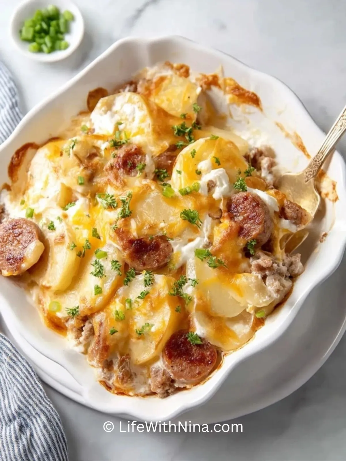 Dieser einfache Pierogi-Auflauf mit Wurst ist ein herzhaftes, cremiges Ofengericht mit zarten Pierogi, würziger Räucherwurst und goldbraun geschmolzenem Käse. Perfekt für ein schnelles Familienessen, ein gemütliches Abendessen oder wenn du mit wenig Aufwand etwas besonders Sättigendes servieren möchtest.