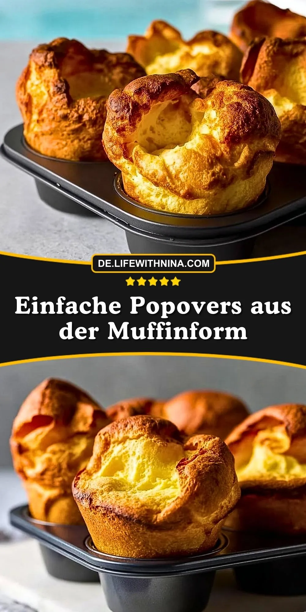 Die klassische Popover-Form ist in Deutschland schwer zu bekommen – aber zum Glück funktioniert das Rezept auch wunderbar in einer ganz normalen Muffinform! Die Mulden sind ideal, damit der Teig schön aufgehen und die charakteristische, luftige Struktur bilden kann. Der Trick: Muffinform gut vorheizen und reichlich einfetten, damit die Popovers sich problemlos lösen lassen.