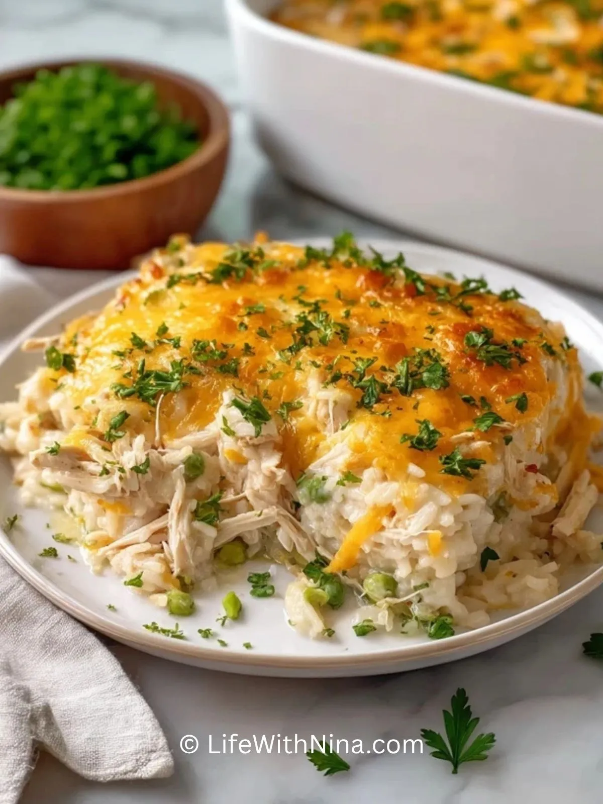 Weil er vertraute Zutaten in einem einzigen Gericht vereint: Eiweiß, Sättigungsbeilage, Gemüse und cremige Sauce. Der Auflauf ist mild, vielseitig und leicht anzupassen, sodass er Kindern ebenso gut schmeckt wie Erwachsenen. Außerdem ist er ideal, um gegartes Hähnchen und übrig gebliebenen Reis sinnvoll und lecker zu verwerten.