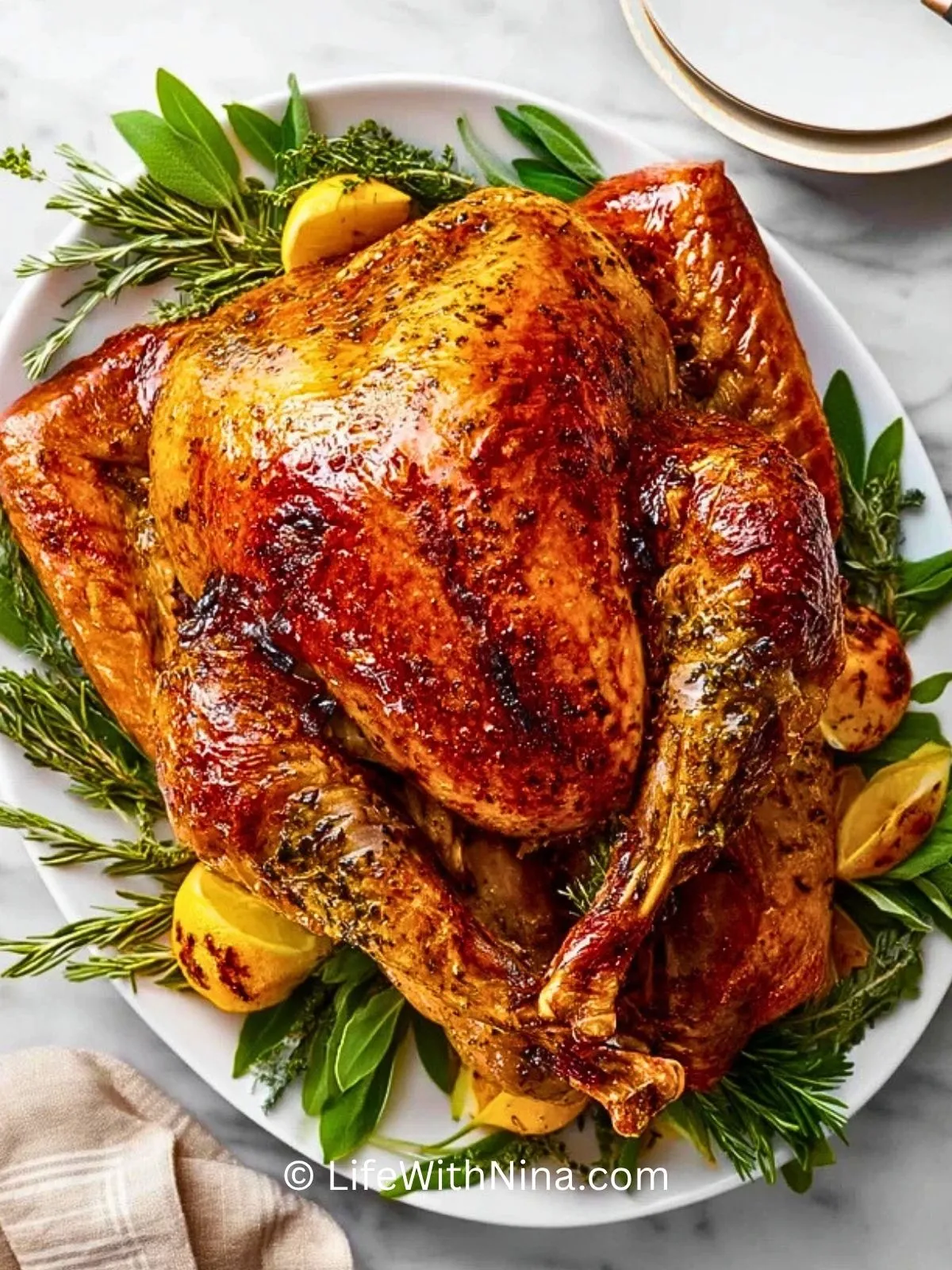 Das Rezept setzt auf klassische Zutaten wie Butter, Zitrone, Knoblauch und frische Kräuter. So bekommt der Truthahn viel Geschmack, ohne komplizierte Marinaden oder aufwendige Techniken zu brauchen. Das Ergebnis ist ein festlicher Braten, der beeindruckend aussieht und sich trotzdem ganz entspannt vorbereiten lässt.