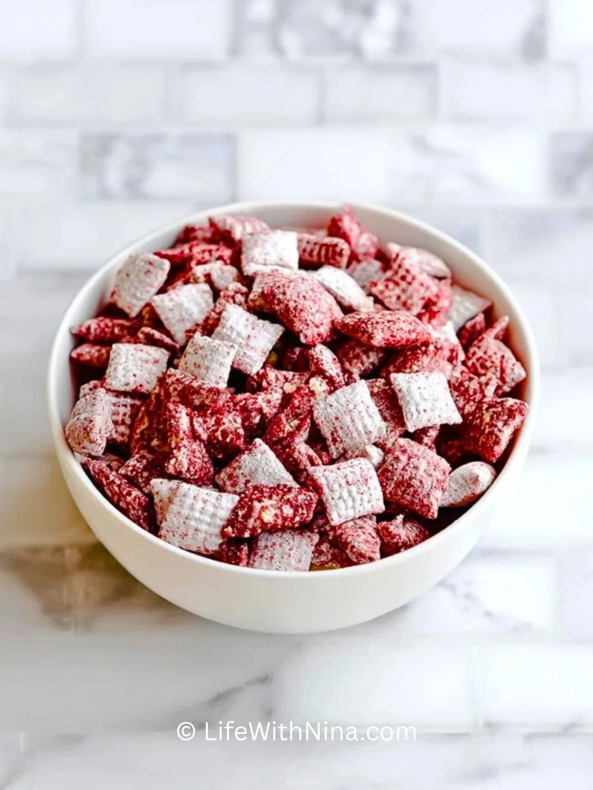 Keywords: Red Velvet, Puppy Chow, Muddy Buddies, Snack, Party