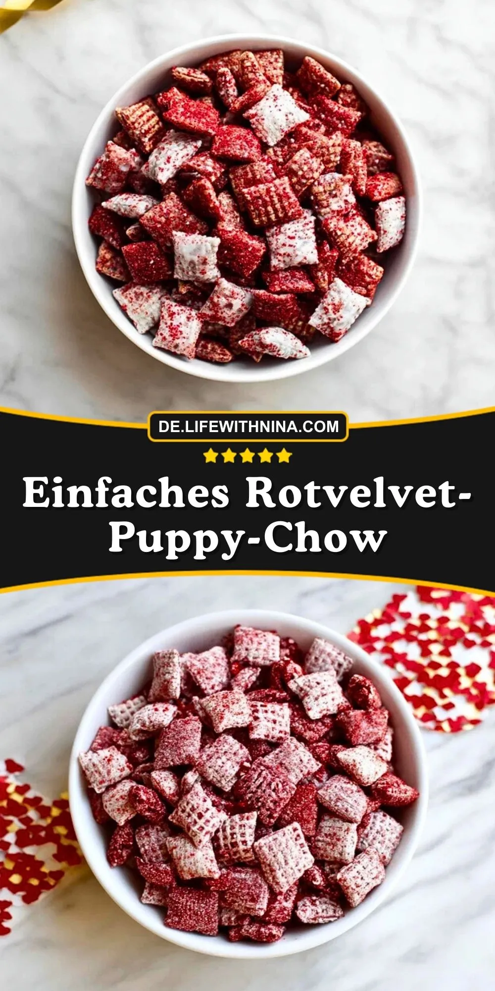 Knusprig, schokoladig und unwiderstehlich: Dieses Red Velvet Puppy Chow ist der perfekte Snack für Partys, Filmabende oder einfach zum Naschen zwischendurch! Die Kombination aus rotem Schokoüberzug und feinem Puderzucker macht dieses Rezept zu einem echten Hingucker und Genuss für jeden Anlass.
