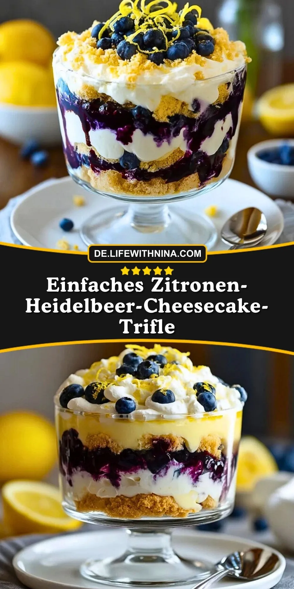 So bereitest du Einfaches Zitronen-Heidelbeer-Cheesecake-Trifle zu
