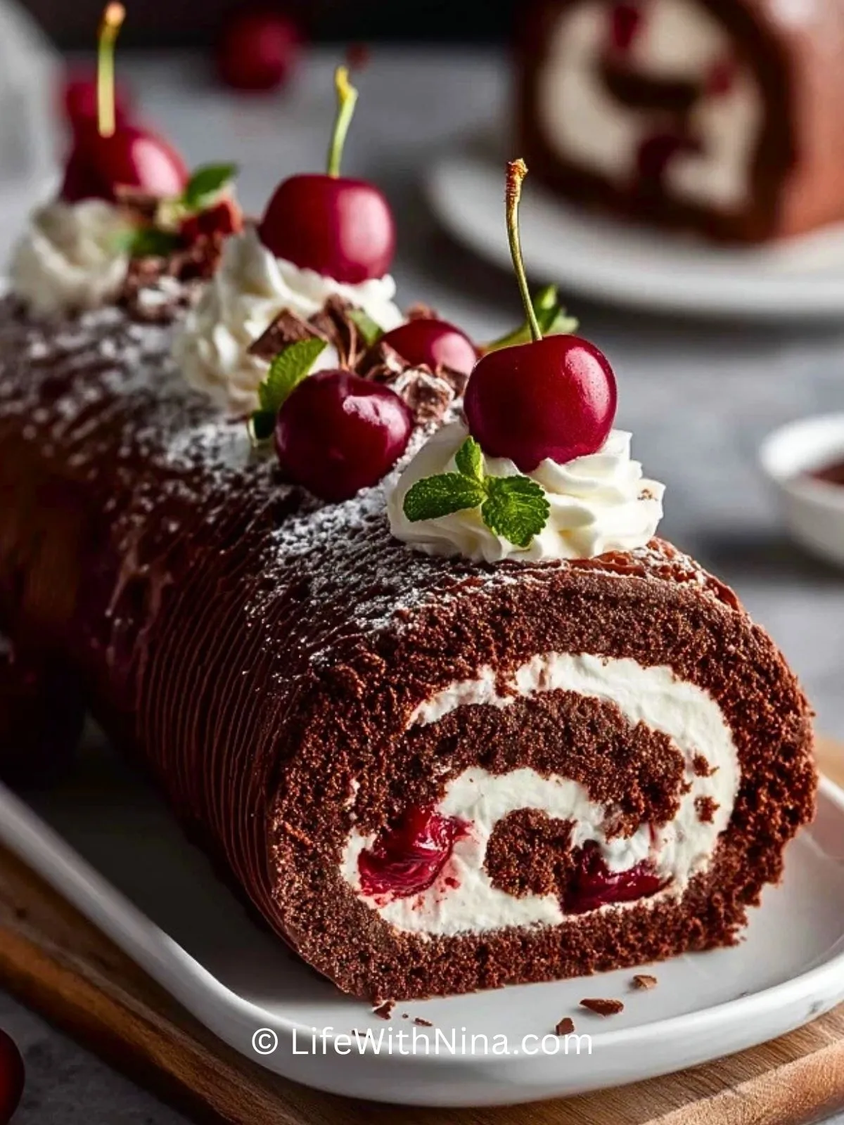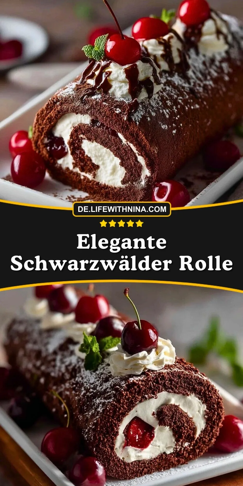 Diese elegante Schwarzwälder Rolle bringt das Beste der Schwarzwälder Kirschtorte in ein handliches, schnell gemachtes Format. Saftiger Schokobiskuit, luftige Sahne und aromatische Kirschen – perfekt für jeden Anlass!