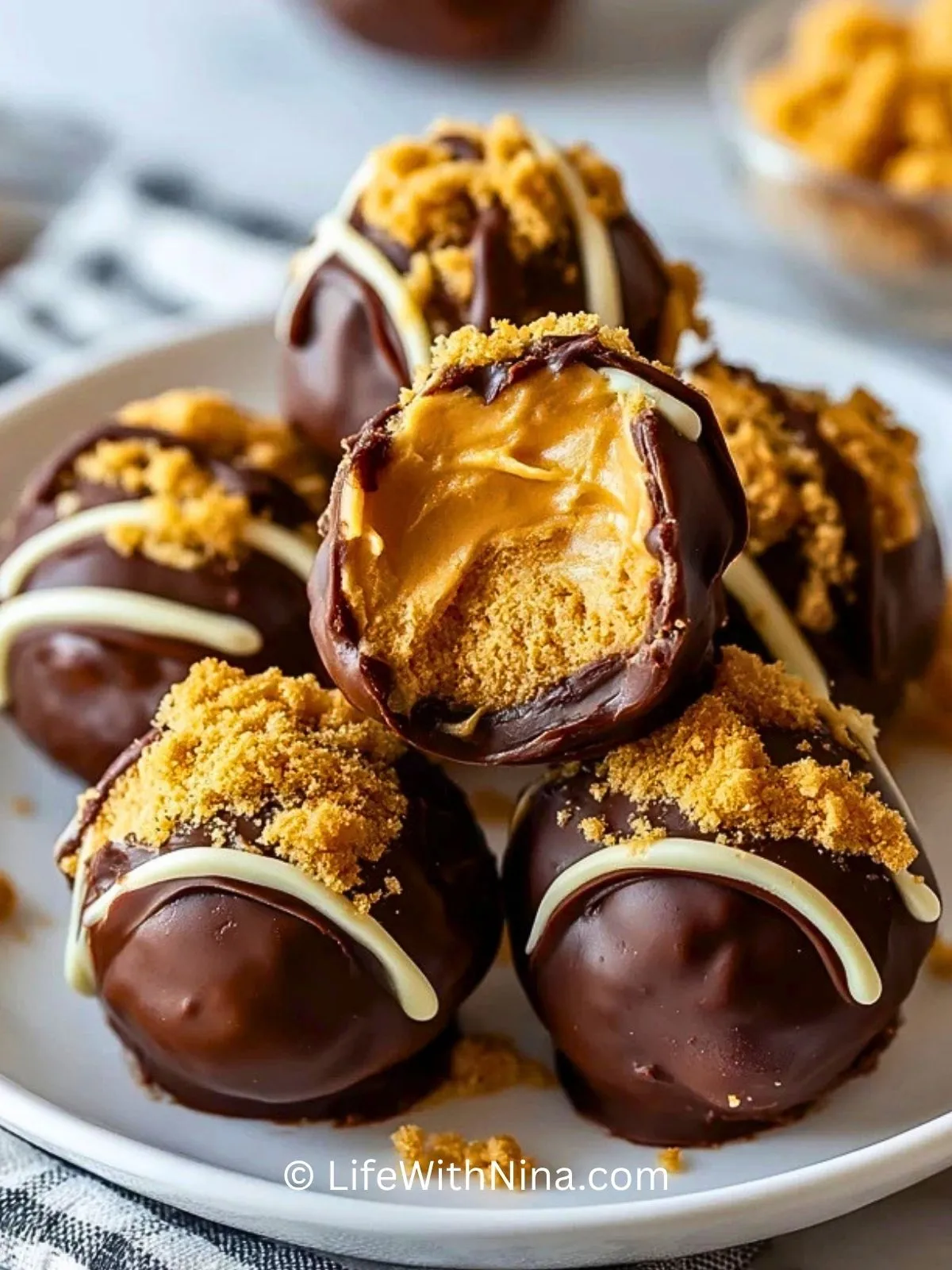 Weil sie mehrere beliebte Dessert-Komponenten in einem einzigen Happen zusammenbringen: die frische Cremigkeit eines Cheesecakes, den intensiven Geschmack von Erdnussbutter und die feine Bitternote einer Schokoladenhülle. Außerdem lassen sie sich gut vorbereiten, im Kühlschrank aufbewahren und portionsweise servieren, was sie zu einem idealen Rezept für Gäste und besondere Anlässe macht.