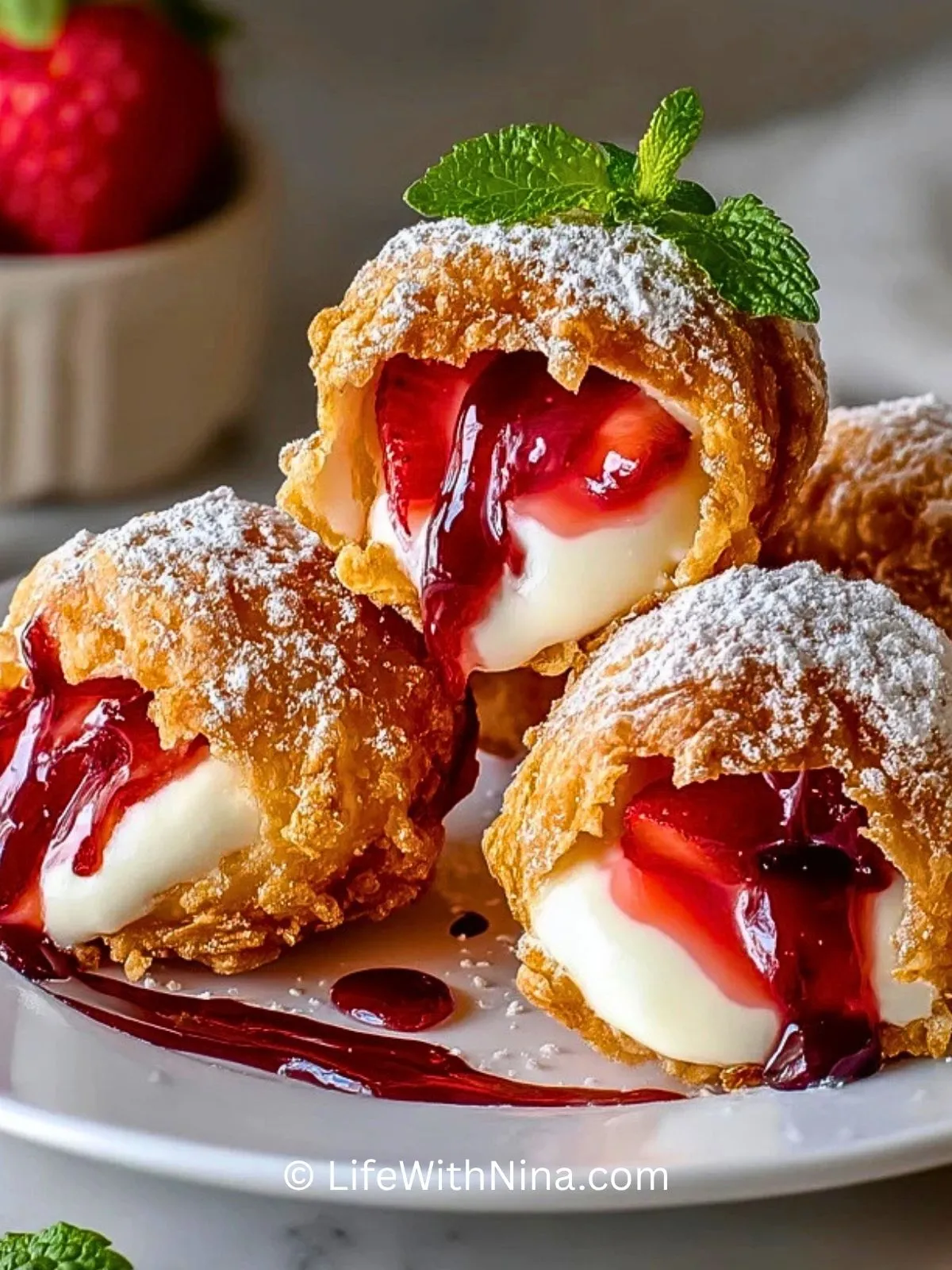 Keywords: frittierte Erdbeer-Cheesecake-Taschen, Erdbeer Dessert, Cheesecake Taschen, frittierte Süßspeise