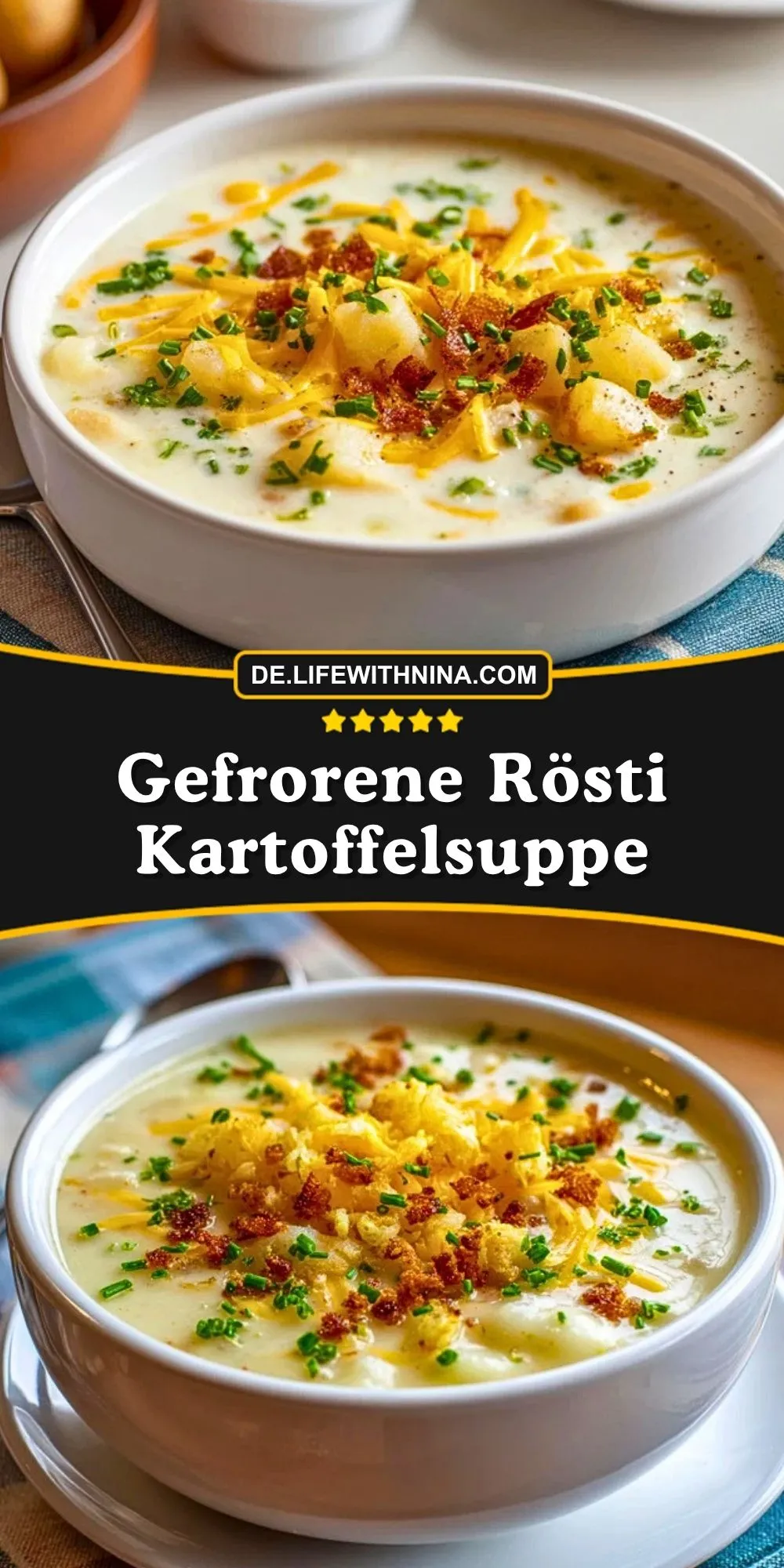 Keywords: Gefrorene Rösti Kartoffelsuppe, Kartoffelsuppe, cremige Suppe, Rösti Rezept, einfache Suppe