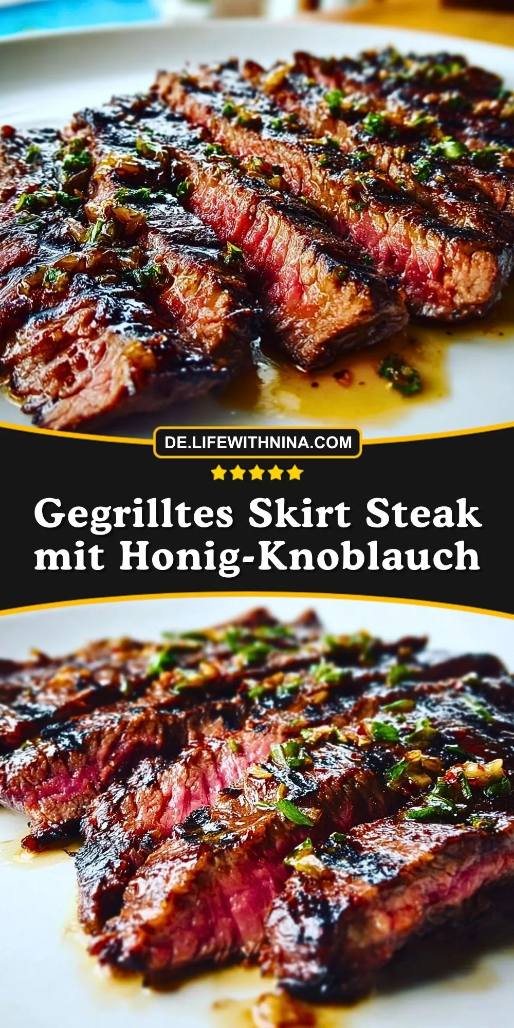 Zartes Skirt Steak trifft auf eine süß-würzige Honig-Knoblauch-Marinade und wird durch kräftiges Anbraten wunderbar aromatisch und saftig. Perfekt für ein schnelles, beeindruckendes Grillgericht, das garantiert gelingt und sowohl Steak-Fans als auch Gäste begeistert.