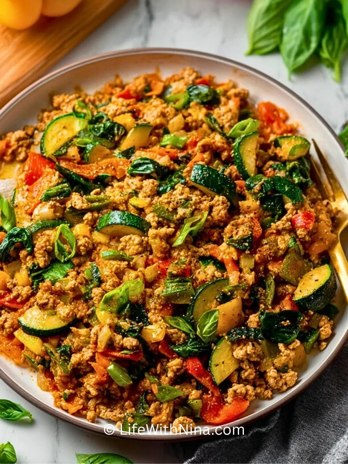 Besonders praktisch ist, dass sich das Rezept leicht an das anpassen lässt, was gerade im Kühlschrank liegt. Zucchini, Paprika, Tomaten und Spinat sorgen für Farbe, Frische und Struktur, während die Truthahnstreifen oder das Truthahnhack für eine sättigende Eiweißquelle sorgen. So entsteht ein Essen, das sowohl mittags als auch abends hervorragend schmeckt.