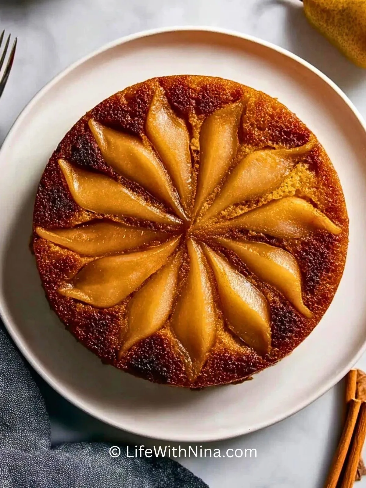 Der Clou: Der Kuchen wird “auf dem Kopf” gebacken, das heißt, die Birnen landen zuerst in der Form. Nach dem Backen wird er gestürzt – so entsteht ein beeindruckendes Muster und der Saft der Birnen zieht wunderbar in den Teig. Ein Fest für Augen und Gaumen!