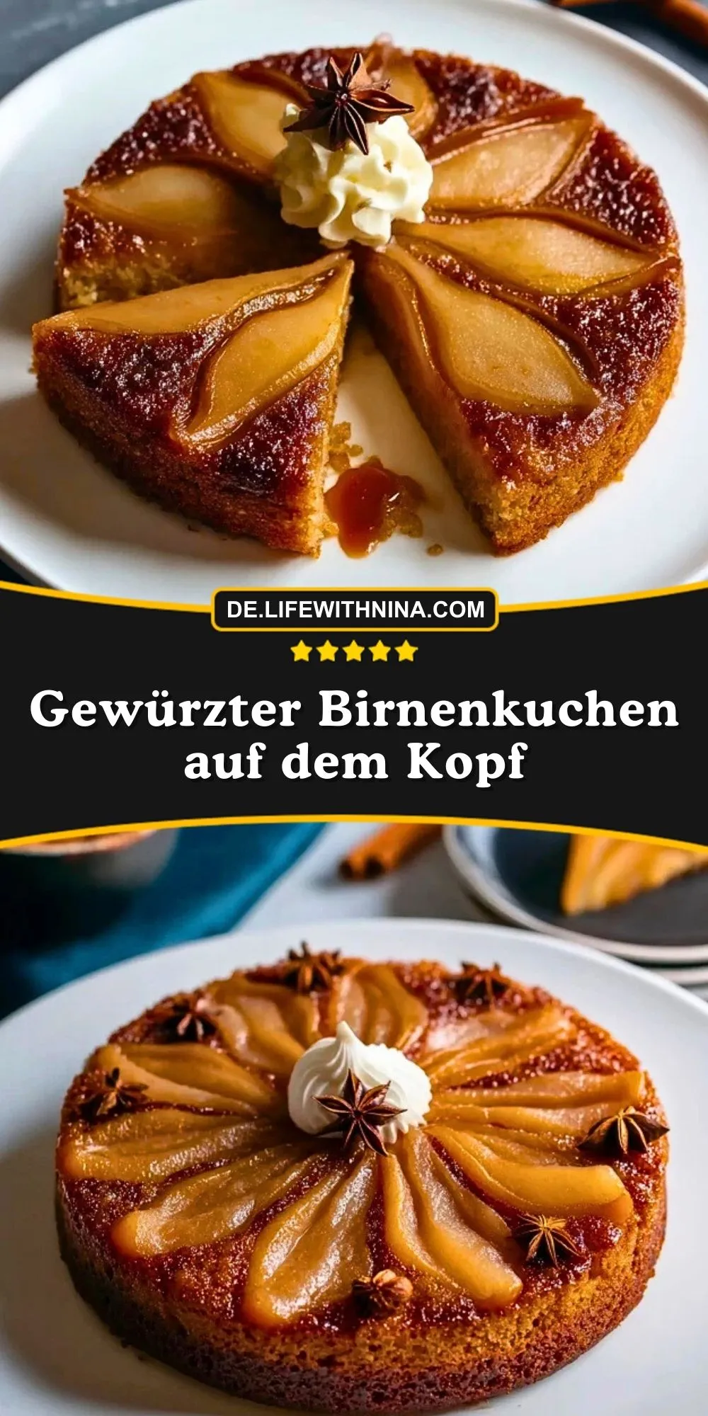 Saftige Birnen, aromatische Gewürze und eine Karamellschicht machen diesen Gewürzten Birnenkuchen auf dem Kopf zu einem besonderen Genuss. Perfekt für gemütliche Herbsttage und als Highlight für jede Kaffeetafel.