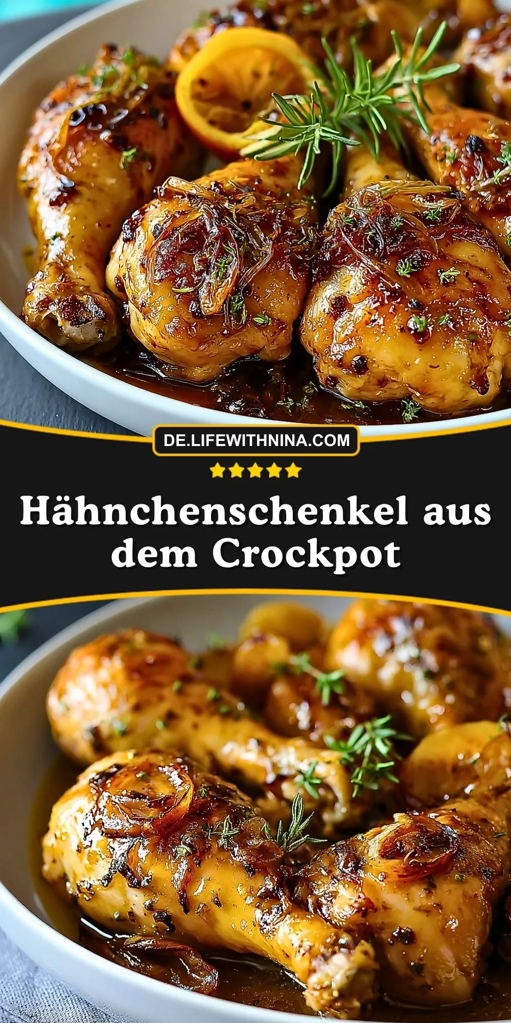 Zart gegarte Hähnchenschenkel mit aromatischen Kräutern, Zitrone und einer feinen Sauce – einfach im Crockpot zubereitet, unglaublich saftig und voll im Geschmack. Perfekt für stressfreie Genussmomente und unkomplizierte Familienküche!