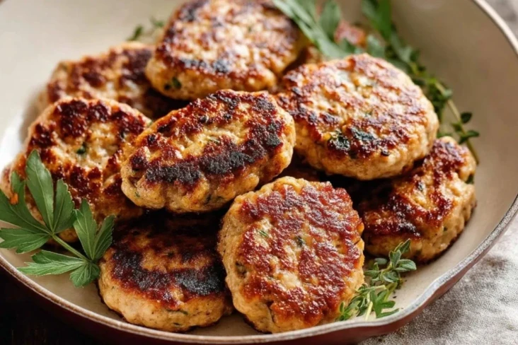 Herzhafte Puten-Frühstückspatties mit Rosmarin und Knoblauch.