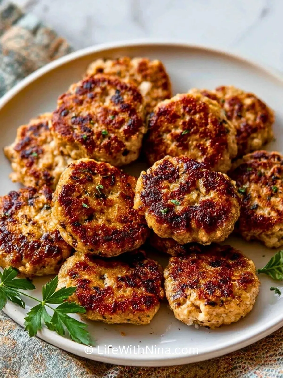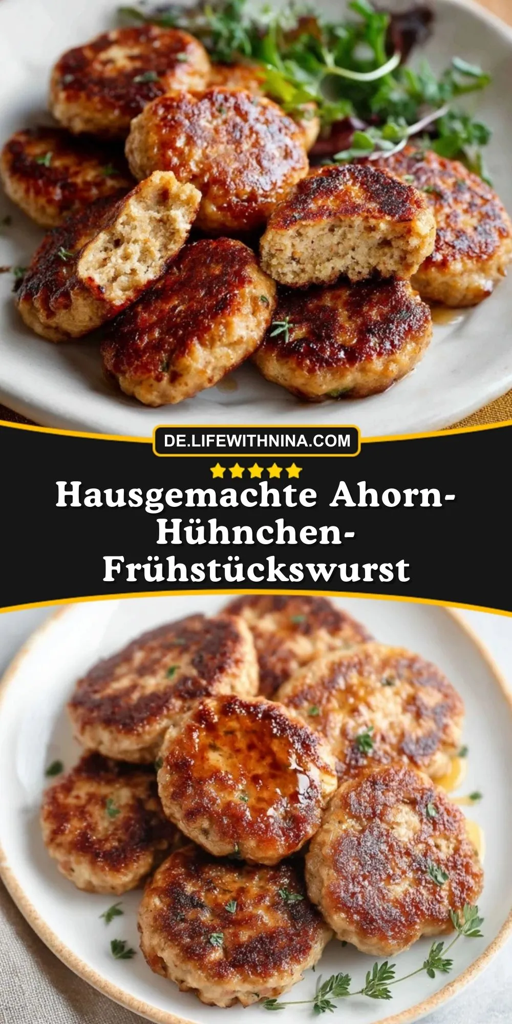 Diese hausgemachte Ahorn-Hühnchen-Frühstückswurst kombiniert zartes Hähnchenhackfleisch mit echtem Ahornsirup und ausgewählten Gewürzen. Das Ergebnis sind saftige Patties mit feiner Süße und goldbrauner Kruste – ideal für Frühstück oder Brunch.