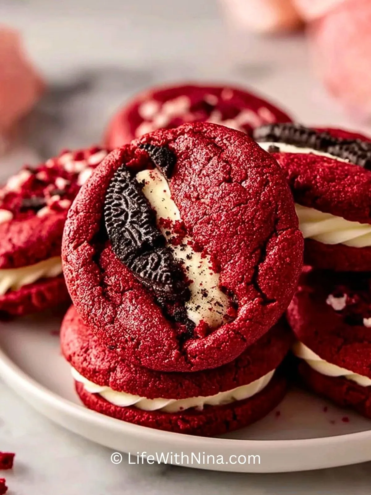 Ja, das Rezept funktioniert auch ohne Oreo. Dann bekommst du eher klassische Red-Velvet-Kekse mit Frischkäsefüllung. Für etwas Struktur kannst du stattdessen Schokostückchen verwenden.