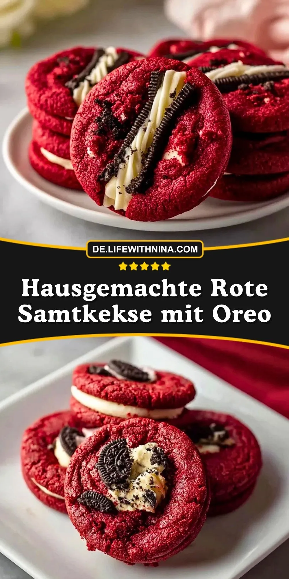 Keywords: rote samtkekse, red velvet kekse, oreo kekse, sandwich-kekse, frischkäsefüllung