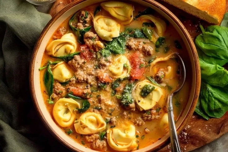 Diese Suppe ist so beliebt, weil sie mehrere Lieblingszutaten in einem einzigen Gericht vereint: würzige Wurst für Tiefe, Tortellini für Biss und Sättigung, Tomaten für Frische und Blattspinat für Farbe und Ausgewogenheit. Dazu kommt eine aromatische Brühe, die durch Knoblauch, Zwiebeln und italienische Kräuter besonders rund schmeckt. Das Ergebnis ist eine Suppe, die schnell gekocht ist, aber erstaunlich viel Geschmack in jede einzelne Löffelportion bringt.