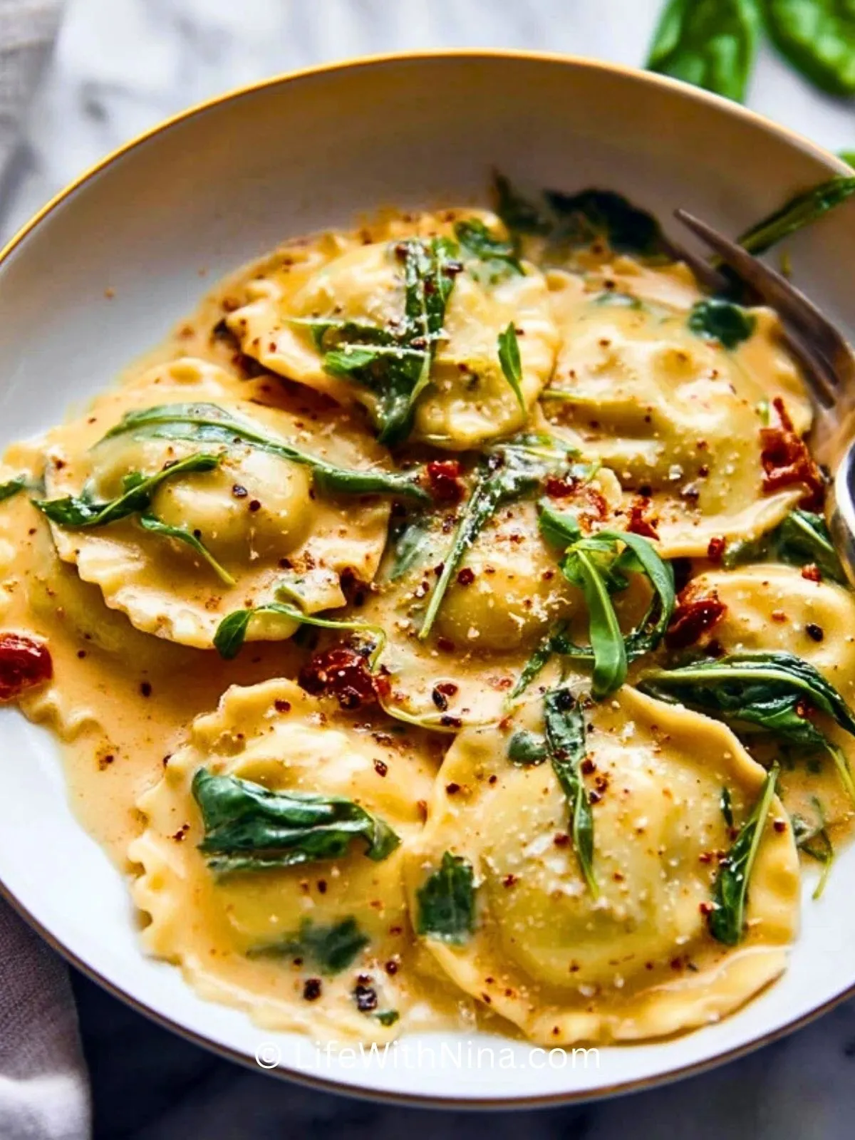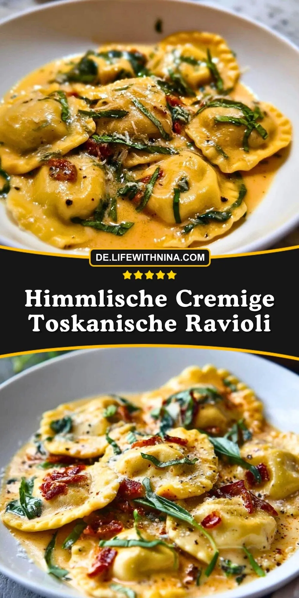 Cremige Toskanische Ravioli sind zarte Teigtaschen in einer unwiderstehlich aromatischen Sauce aus Sahne, getrockneten Tomaten, Spinat und Parmesan. Das perfekte Wohlfühlgericht, das in 30 Minuten auf dem Tisch steht und echtes Italien-Feeling bringt.