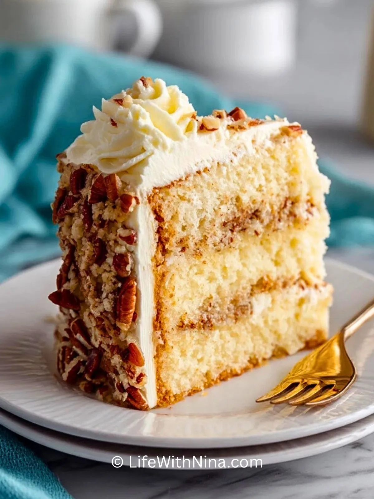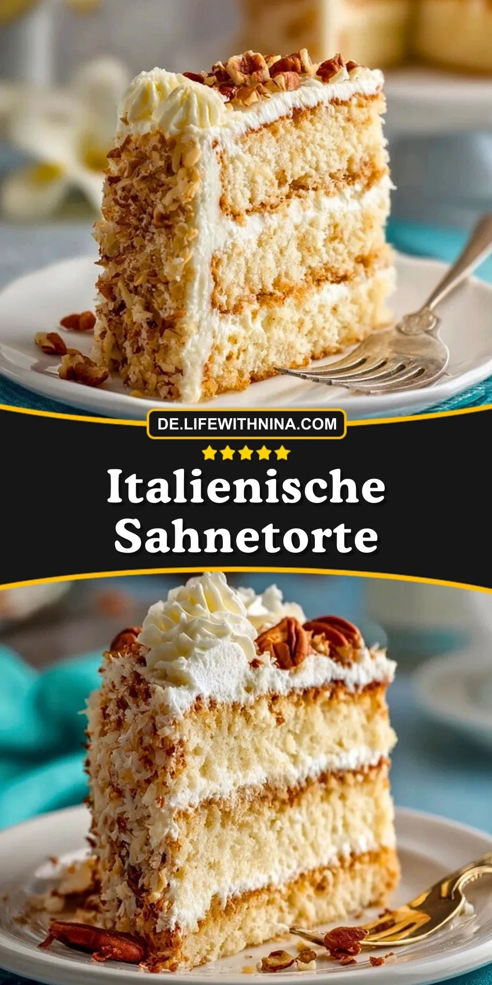Keywords: Italienische Sahnetorte, Sahnetorte, Torte mit Kokos, Torte mit Pekannüssen, festliche Torte